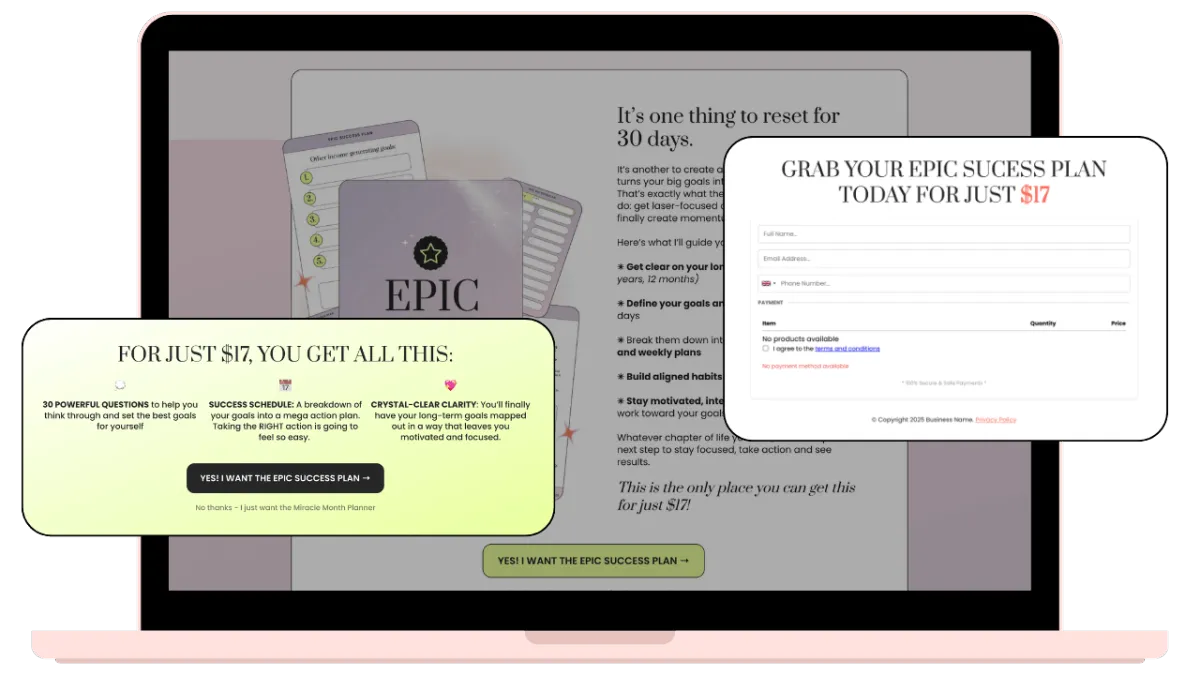 Get our Epic Success Plan: the exact digital product we sold that’s generated over tens of thousands in revenue. You get 100% resell rights to sell it as your own and keep every single penny of profit.