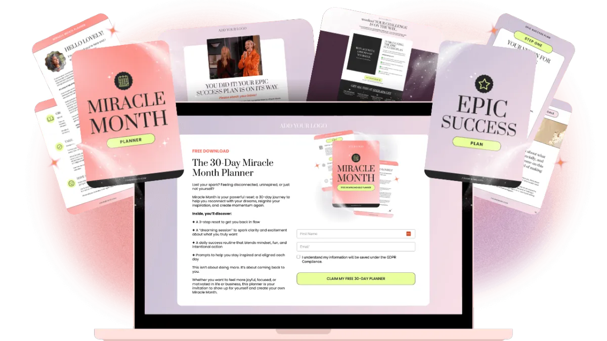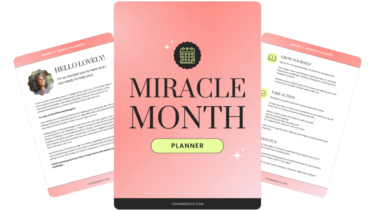 Get our Miracle Month freebie - it’s a powerful digital guide and workbook to help people get their mojo back and reconnect with their dreams. This is the exact freebie that brought us tens of thousands of subscribers! You get full rights to rebrand it as your own (or reshare it as it is) and watch your email list explode.