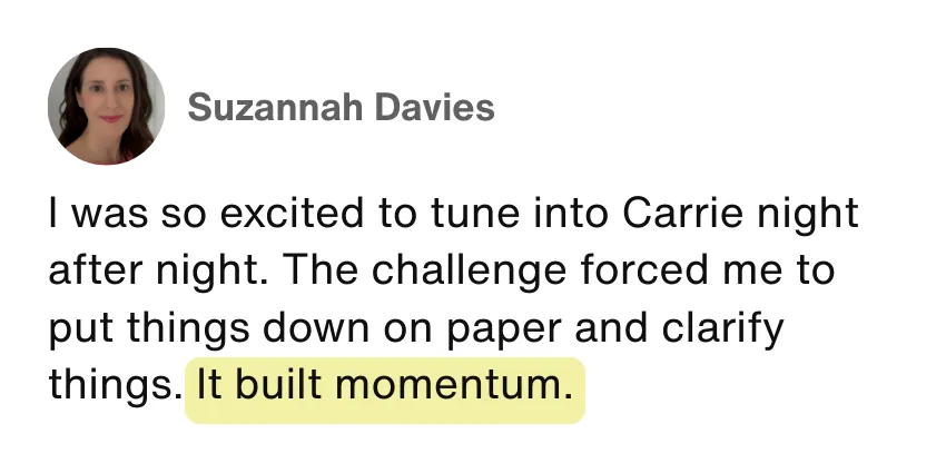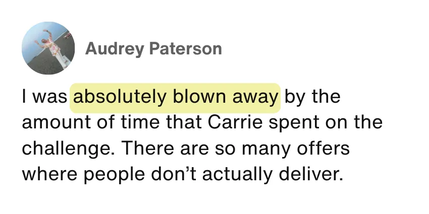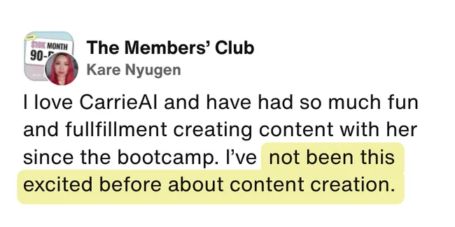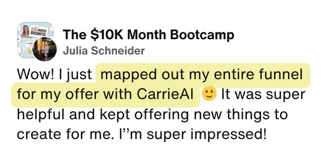 The moment you sign up, you'll get instant access to CarrieAI - your 24/7 business coach loaded with my entire framework from 20+ years of building online businesses.