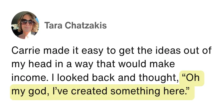 Together we’ll create your own Income Roadmap for 2026, so you know EXACTLY what you need to do to turn your ideas into consistent income - you’ll have a proven plan mapped out for your business. Whether you want to create an online course, coaching business, membership or digital product, Carrie’s going to show you exactly how to create it and sell it.