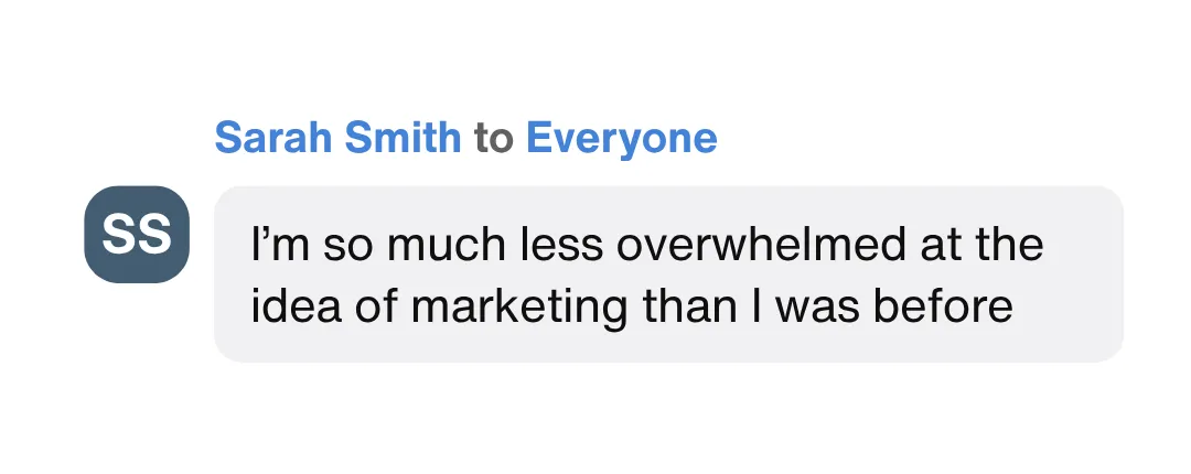 Because we know female entrepreneurs are often balancing a lot of plates: clients, family, life etc etc, and cramming everything into a few days just isn’t realistic. Spacing the sessions over the weke gives you time to take action in between, implement what you learn, and still keep up with real life.