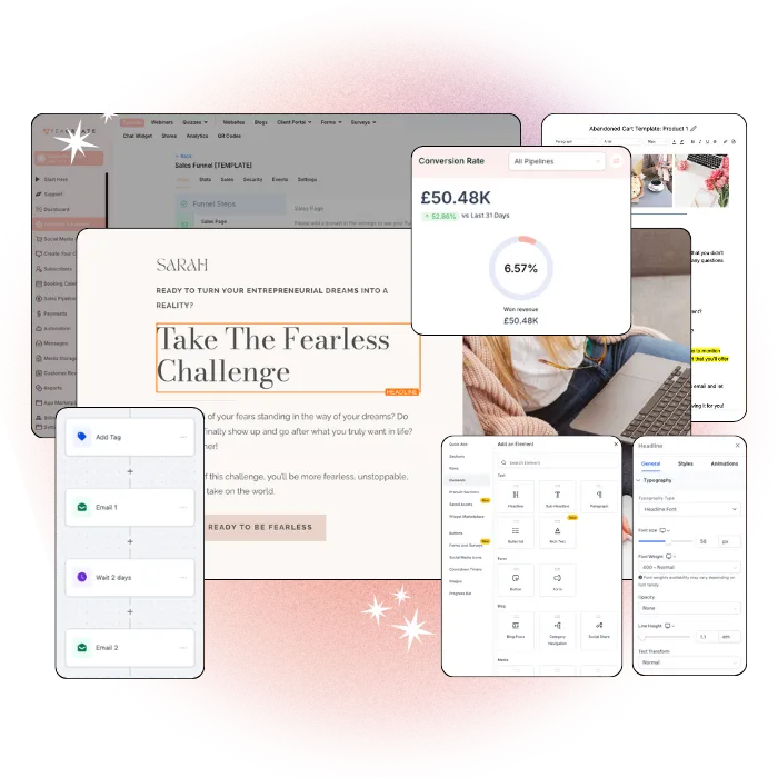 Your sales funnel, checkout, order bumps and upsells and automations to make sales 24/7 - all using our amazing templates.