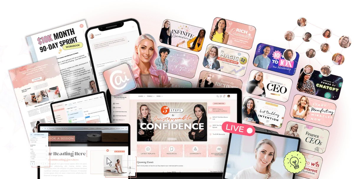 You’ll get instant access to The Members’ Club, which includes our full 90-Day Sprint to build your complete $10K Month System, plus ongoing monthly strategies, accountability, and live sessions with Carrie. You’ll also unlock FEA Create, our all-in-one sales + marketing platform (worth $997/year), along with over 50+ expert masterclasses, a private community, templates, resources, and your very own accountability partner.