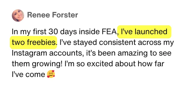 Bite-sized videos with the exact strategies we've tried, tested & perfected at FEA that consistently create results for us. No more trial and error!